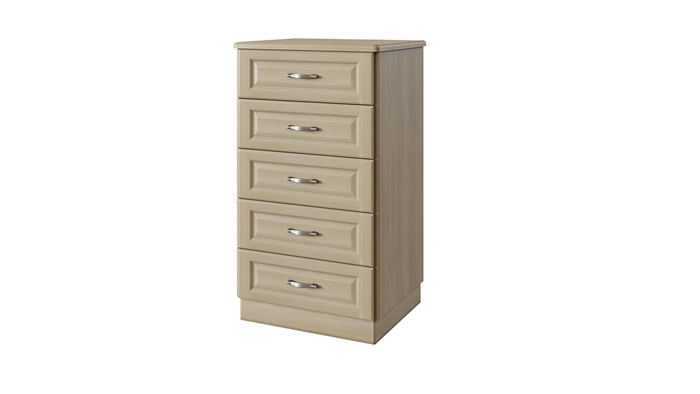 Универсальный предмет мебели — изысканный и функциональный комод — колонка «Эдем» занимает минимальное место в спальне, благодаря своим компактным размерам. Пять вместительных выкатных ящиков оснащены телескопическими направляющими в базовой комплектации и могут быть направляющими с системой довода опционально. Разнообразие цветовых решений на массиве бука и ясеня позволяет легко дополнить интерьер любых цветовых решений. Сборка не требуется.